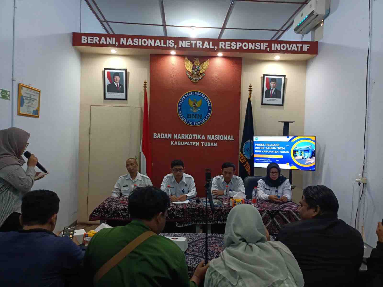 Badan Narkotika Nasional Kabupaten (BNNK) Kabupaten Tuban menggelar Pers Release Akhir Tahun 2024, di Kantor BNNK setempat, Jum’at (27/12/2024).